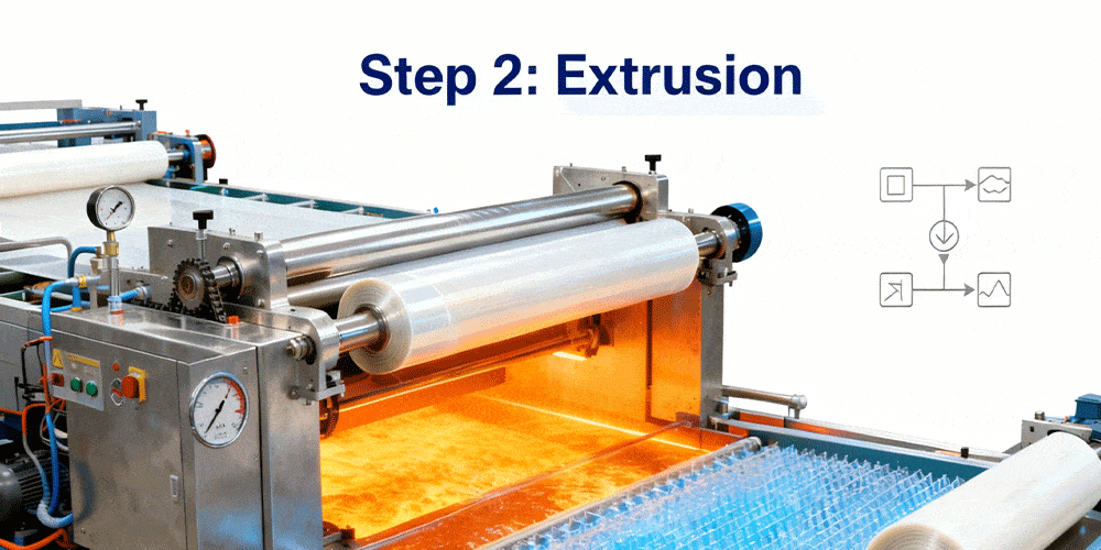Through extrusion, resin is transformed into a uniformly textured film. Here are some common extrusion methods: This stage melts resin pellets at high temperatures. Then, it forms thin, strong packaging base materials. The entire process requires precise temperature control and cooling.
